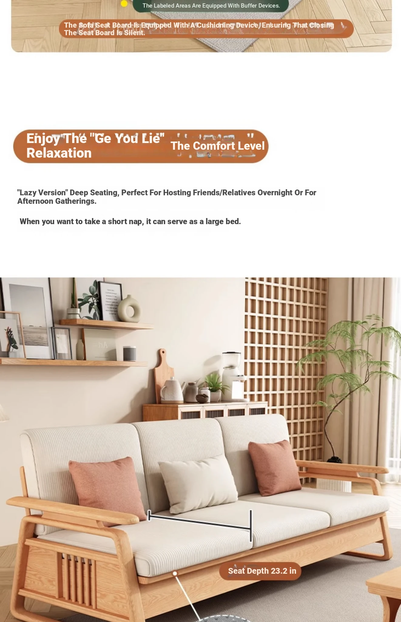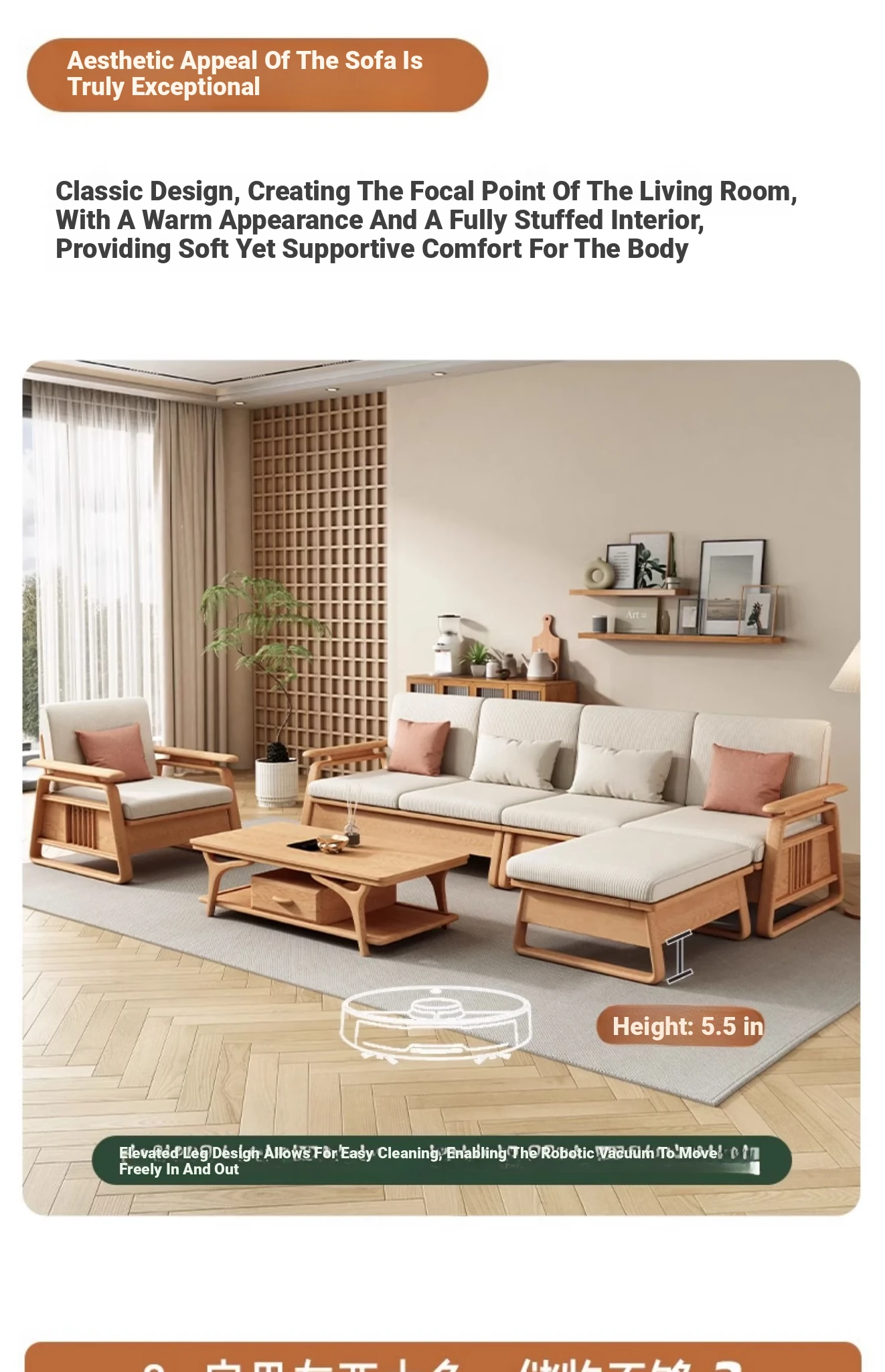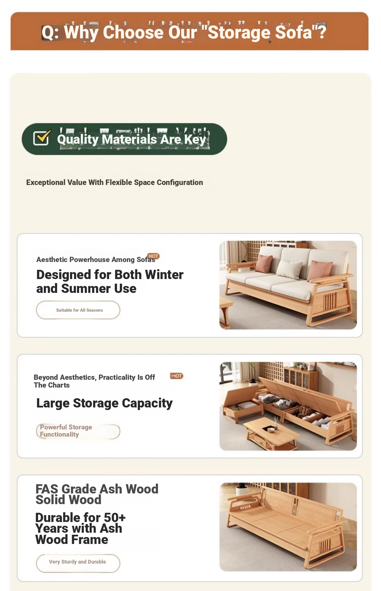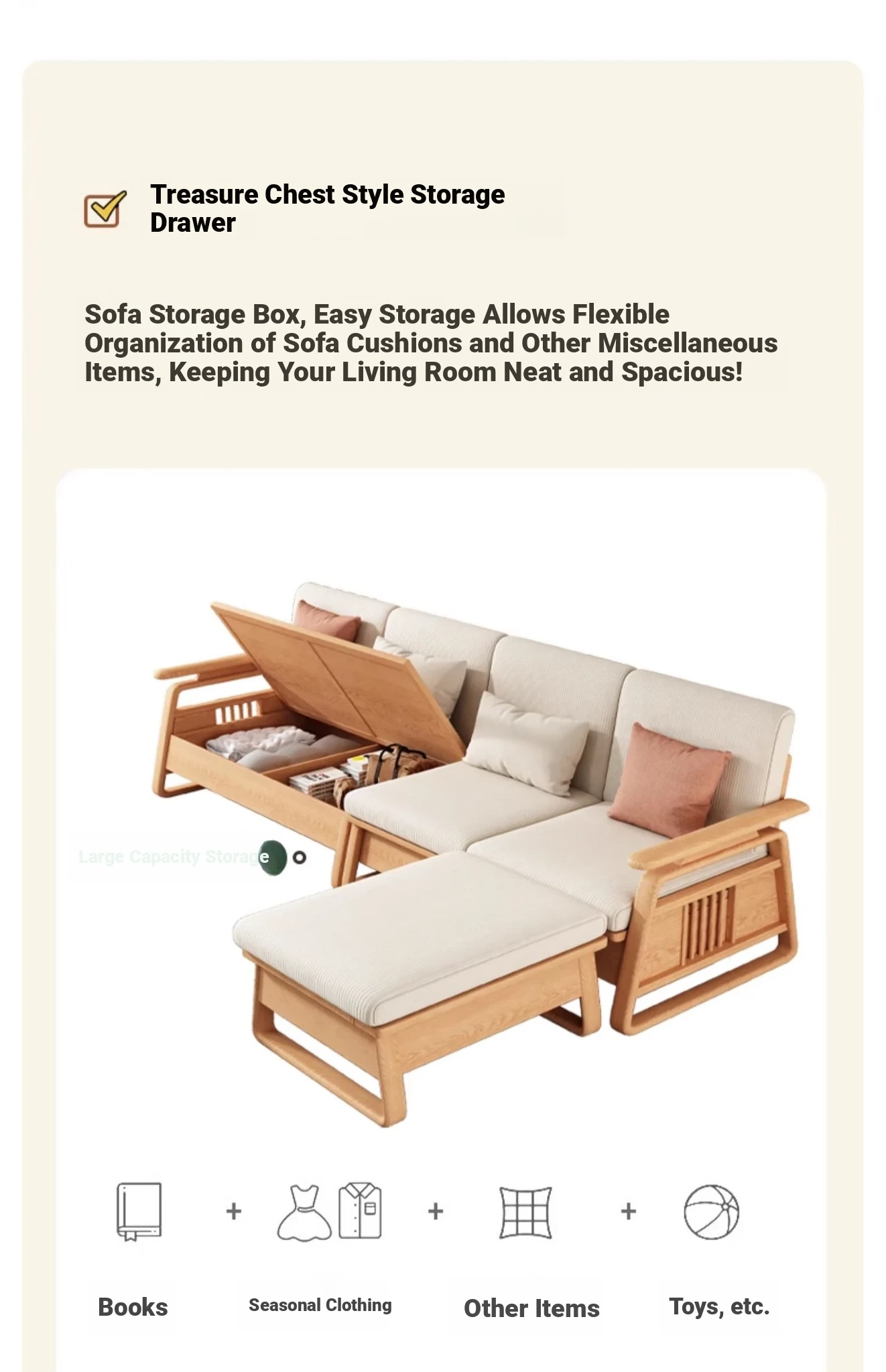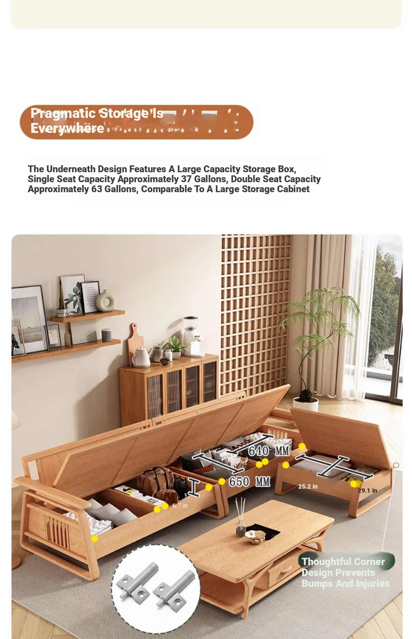 北欧スタイルの天然木製ソファ - 小型・中型住宅に最適!クリーミーな原木風、モダンでシンプルなホワイトアッシュのコーナー収納ソファ。おしゃれで機能的な空間を演出します!