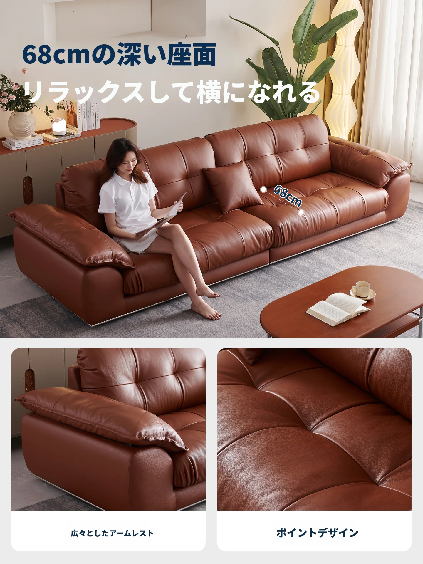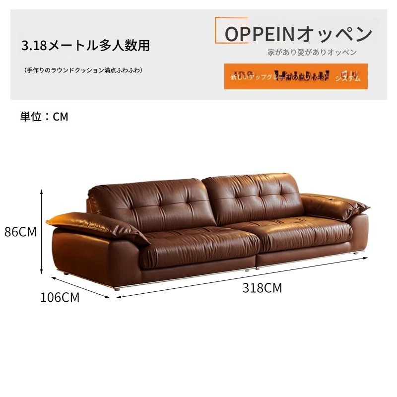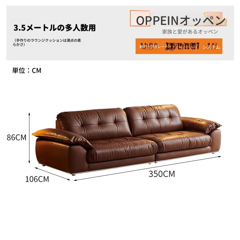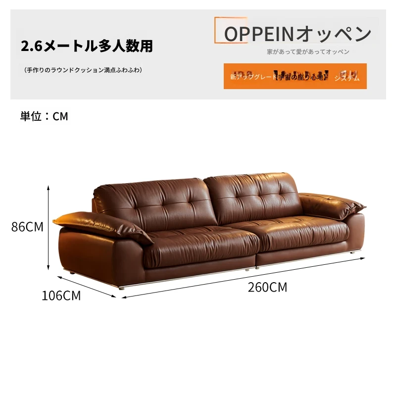 オーパイ店舗同型 雲のような本革ソファ 新作スタークラウドリビングルーム用 一級牛革イタリアンヴィンテージスタイルソファ