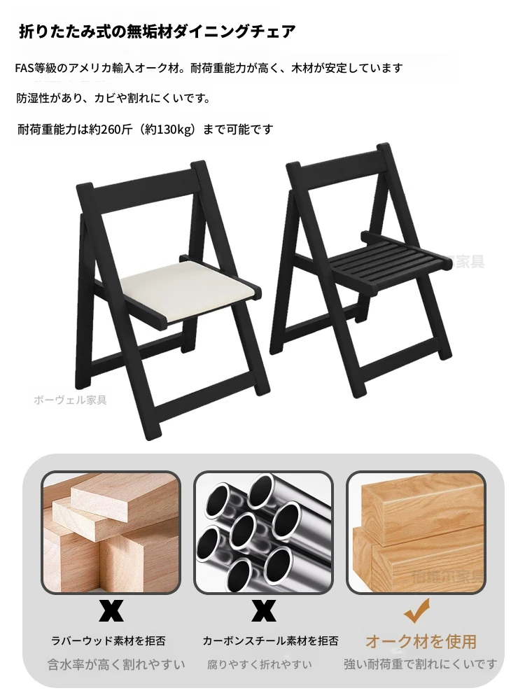 【アップグレード版-ストーンボードタイプ】1.5メートル折りたたみテーブル+2脚のオークチェア【組み立て不要】
