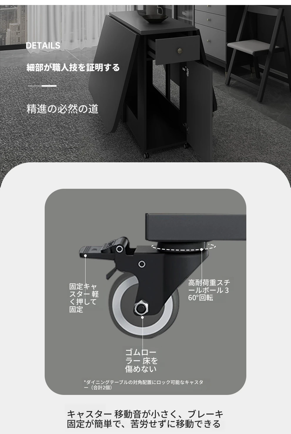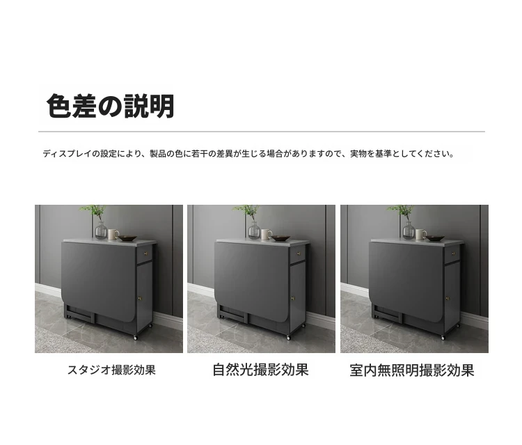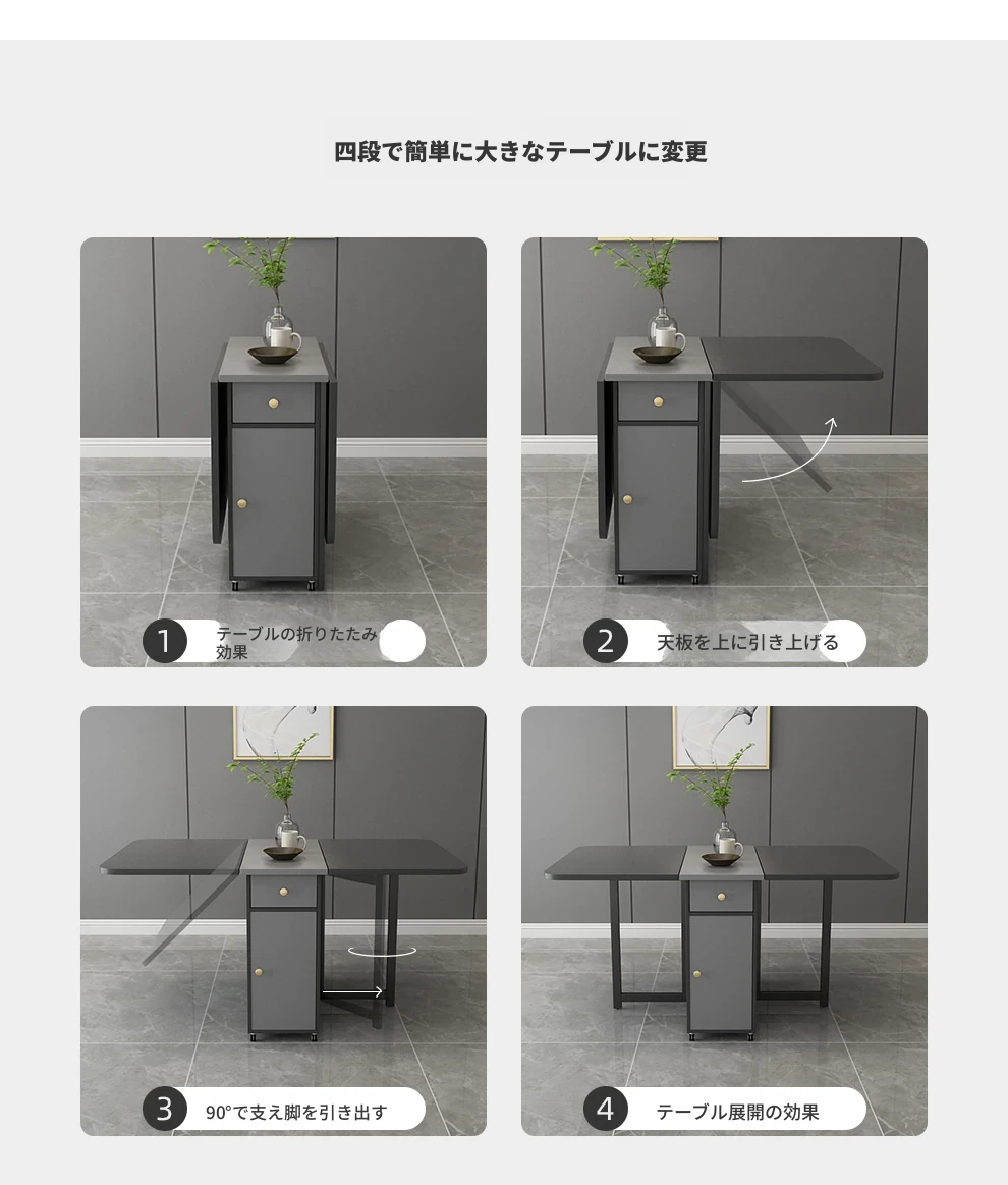 移動式キャスター付き折りたたみテーブル - スリムで現代的なデザイン、伸縮可能な多機能で、狭いスペースにもぴったりの長方形ダイニングテーブル!おしゃれで実用的な食卓を実現します。