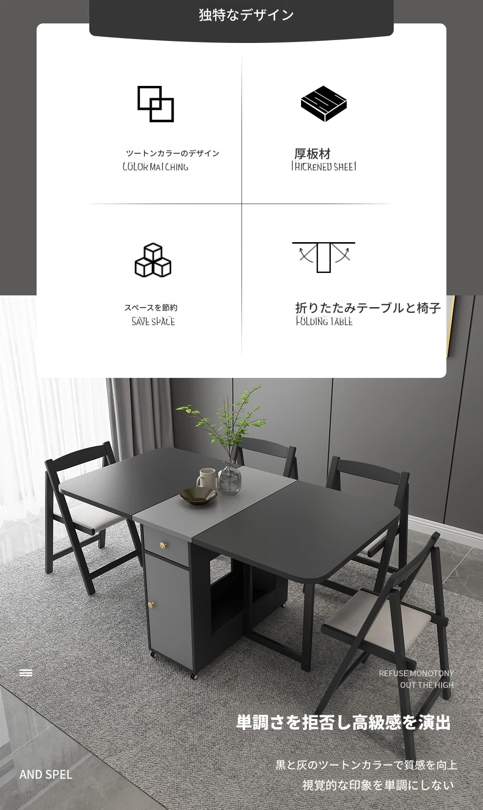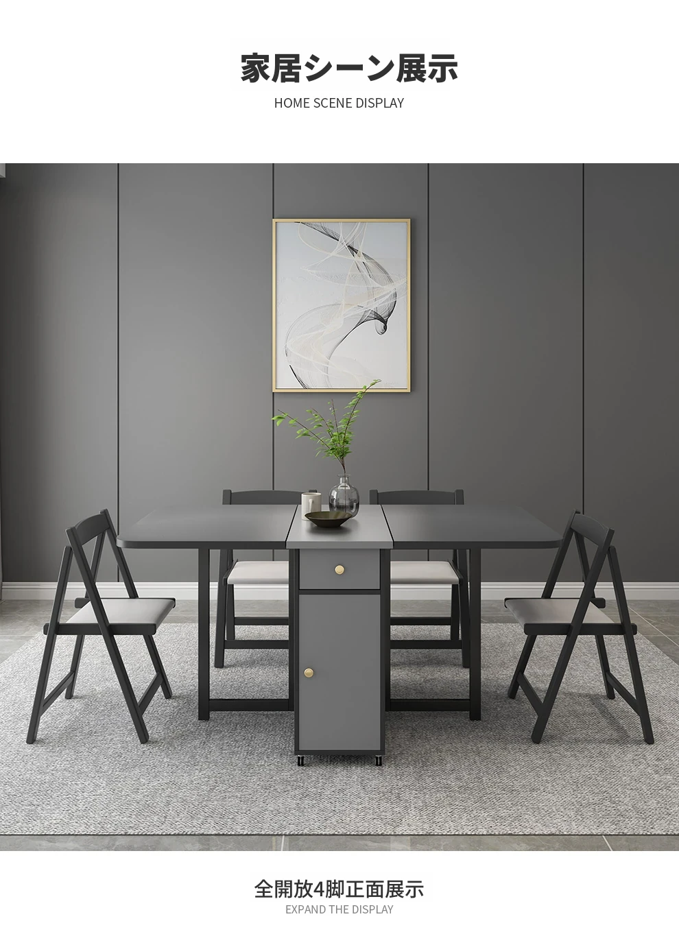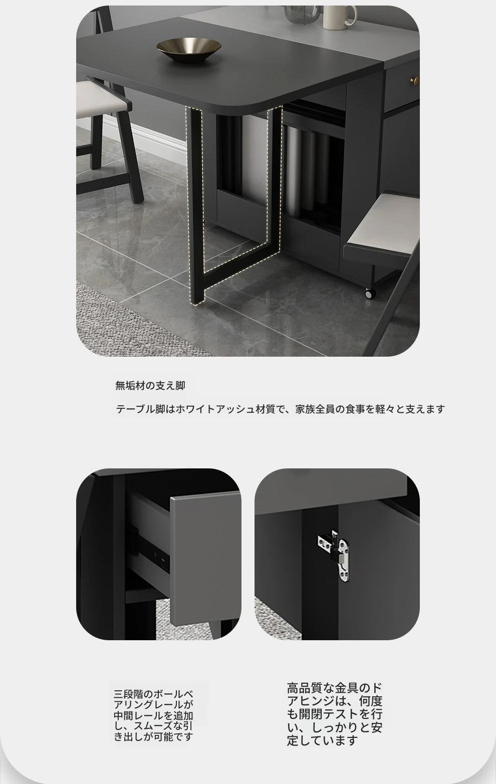 移動式キャスター付き折りたたみテーブル - スリムで現代的なデザイン、伸縮可能な多機能で、狭いスペースにもぴったりの長方形ダイニングテーブル!おしゃれで実用的な食卓を実現します。