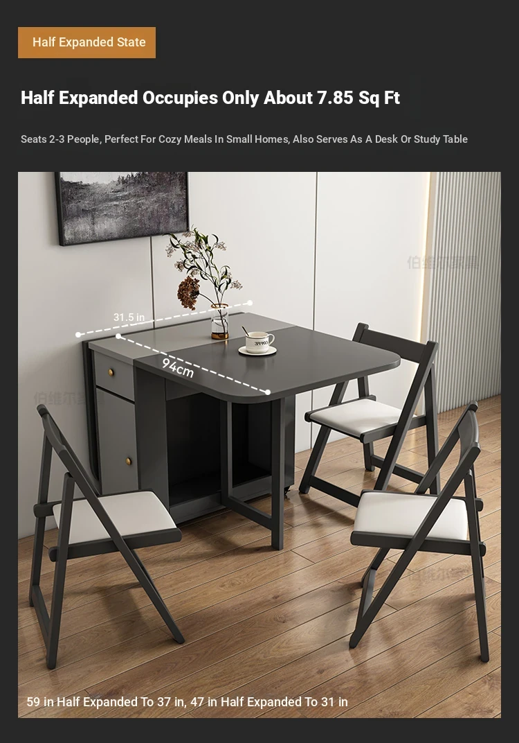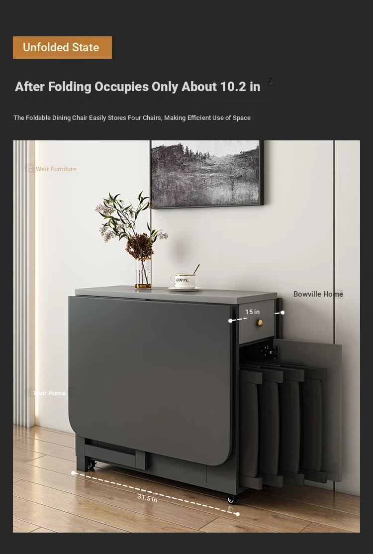 Space-Saving Foldable Rectangular Dining Table for 10 People - Adjustable, Wall-Mounted Design Perfect for Small Spaces and Easy to Move!