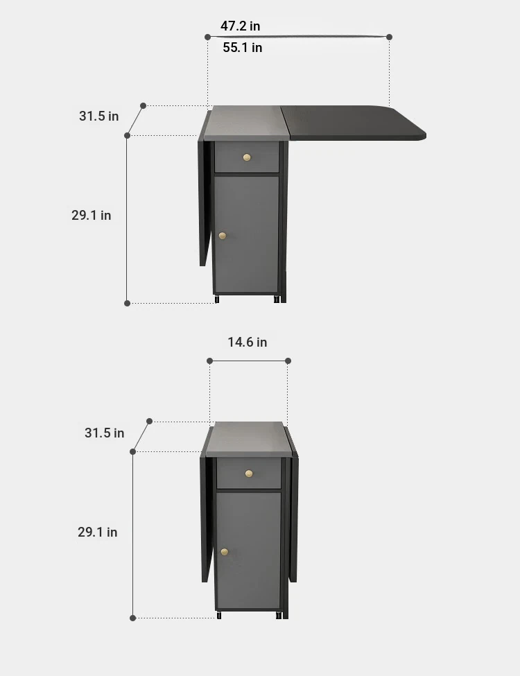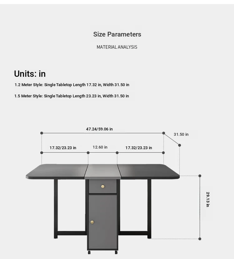 [Gentleman Grey] 47.24 in Foldable Table +4 Oak Chairs