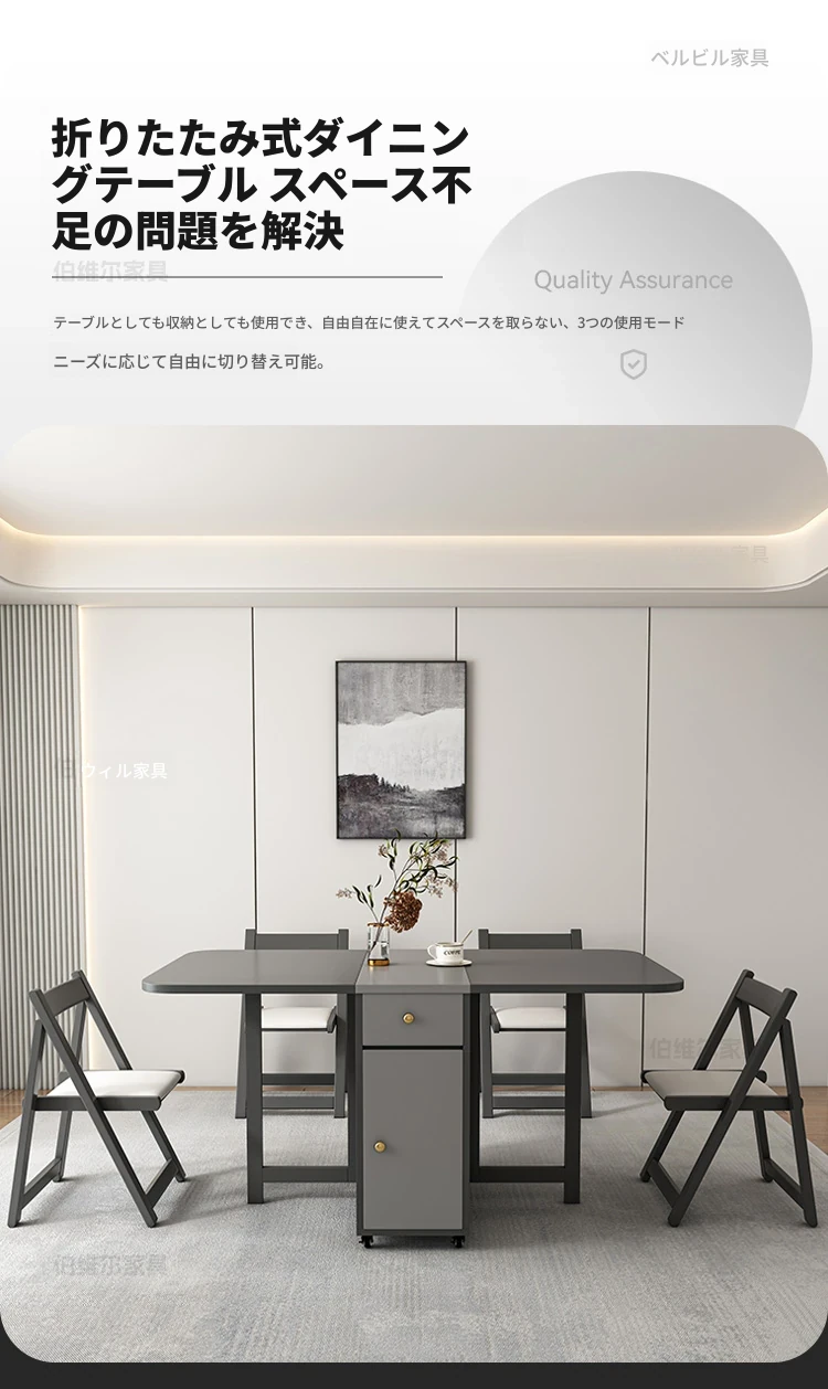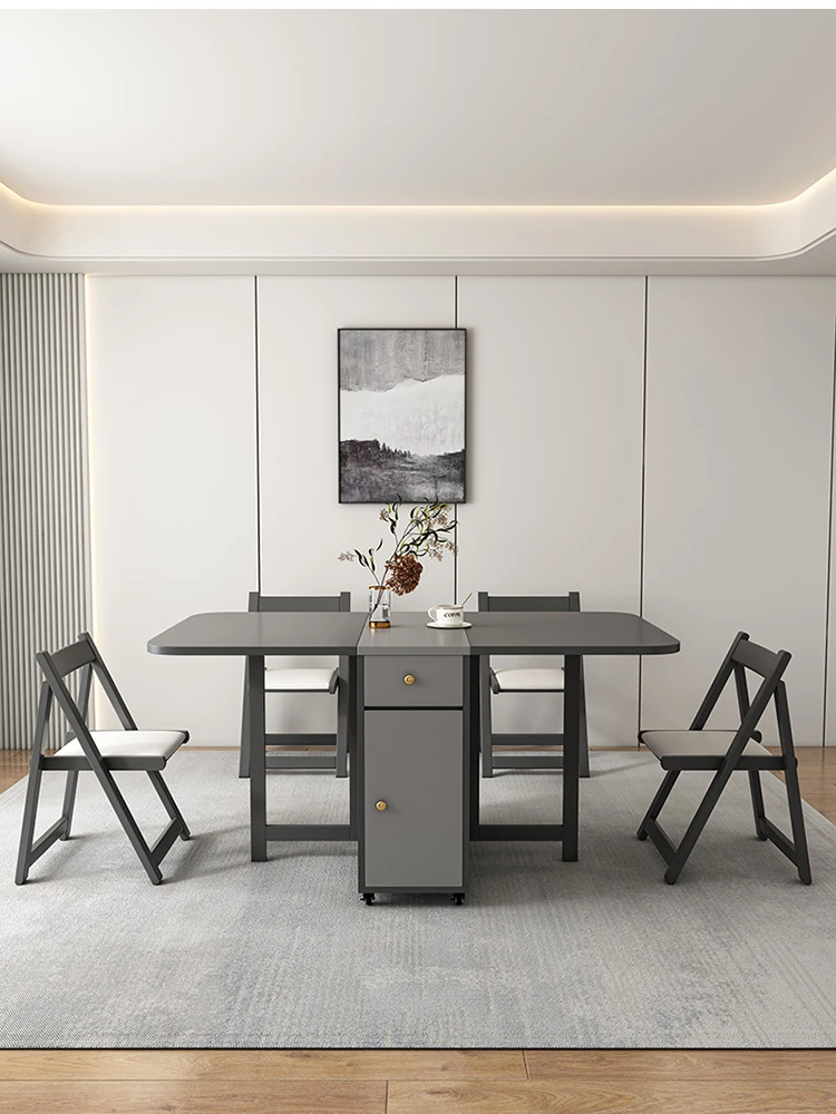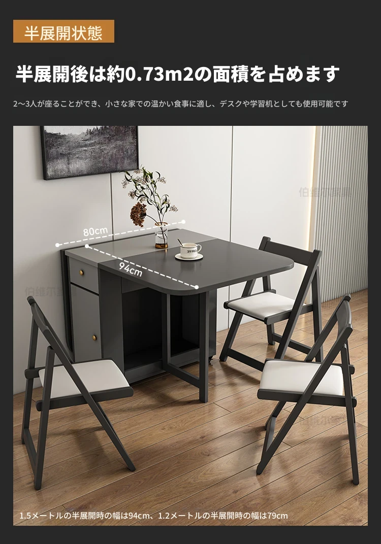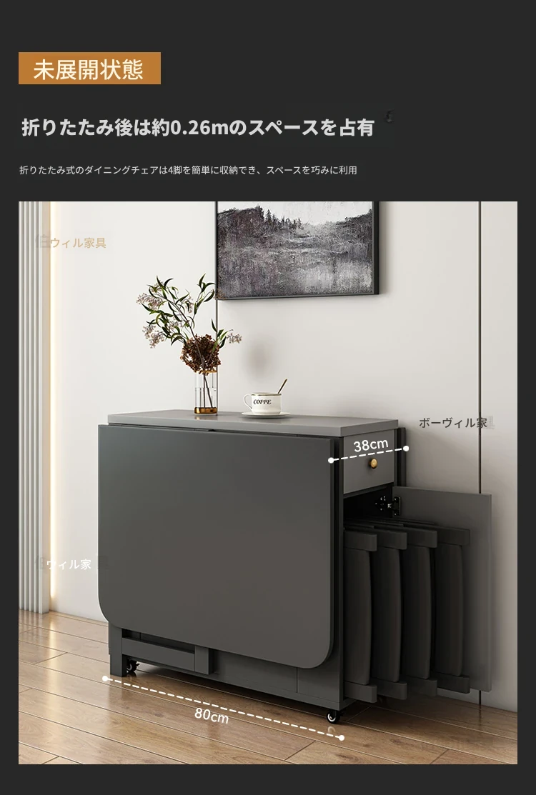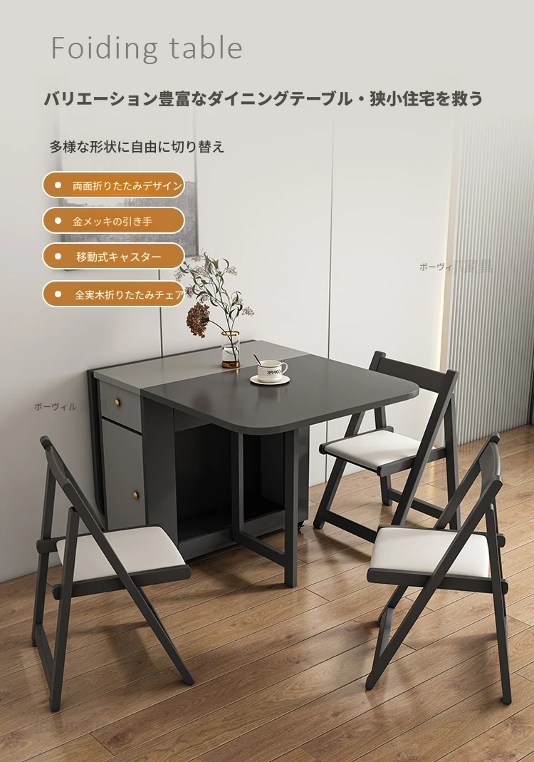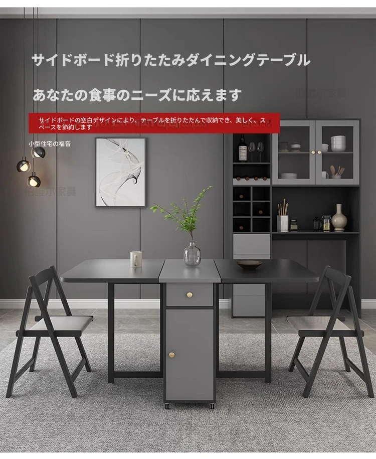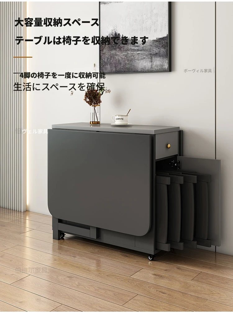 省スペースの折りたたみ式長方形ダイニングテーブル - 10人用、移動可能で伸縮自在、小型住宅に最適な壁付け設計!収納も簡単で、家族や友人との食事を楽しむのにぴったりです!
