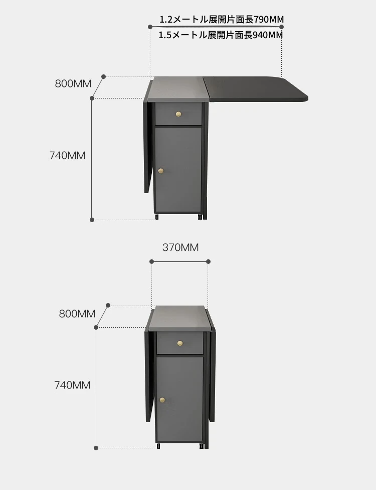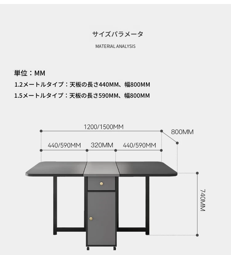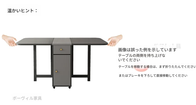【ジェントルグレー】1.5メートル折りたたみダイニングテーブル