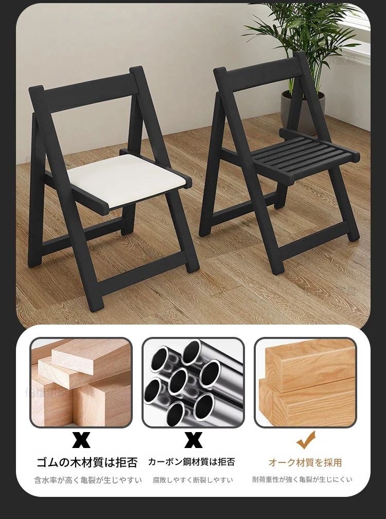 【純白色】1.5メートル折りたたみダイニングテーブル+4脚のオークチェア