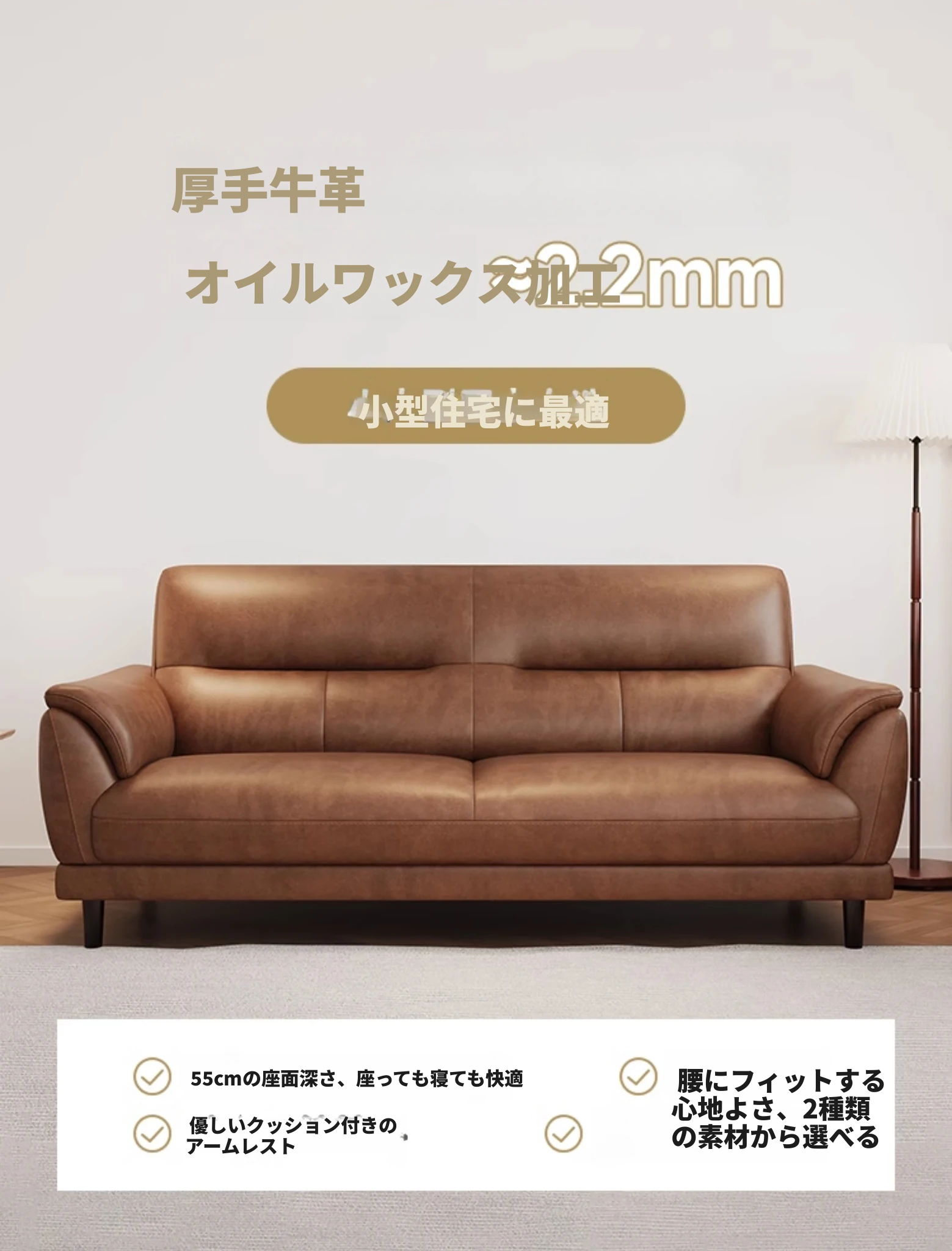 プレミアム版-【一等輸入黄牛革】(小ダブル1.5m)ラテックスモデル+無垢材フレーム キャラメル色