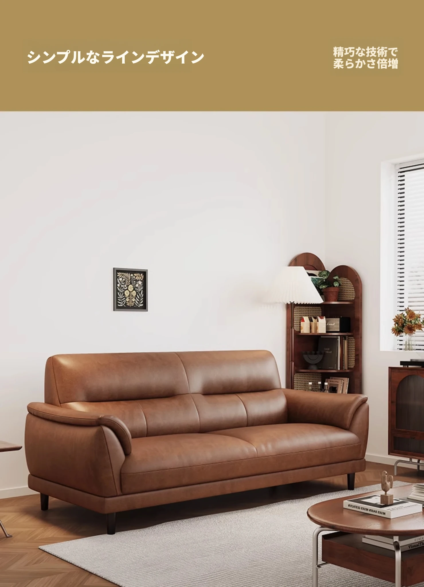 プレミアム版-【一等輸入黄牛革】(3人掛け1.9m)ラテックスモデル+無垢材フレーム キャラメル色