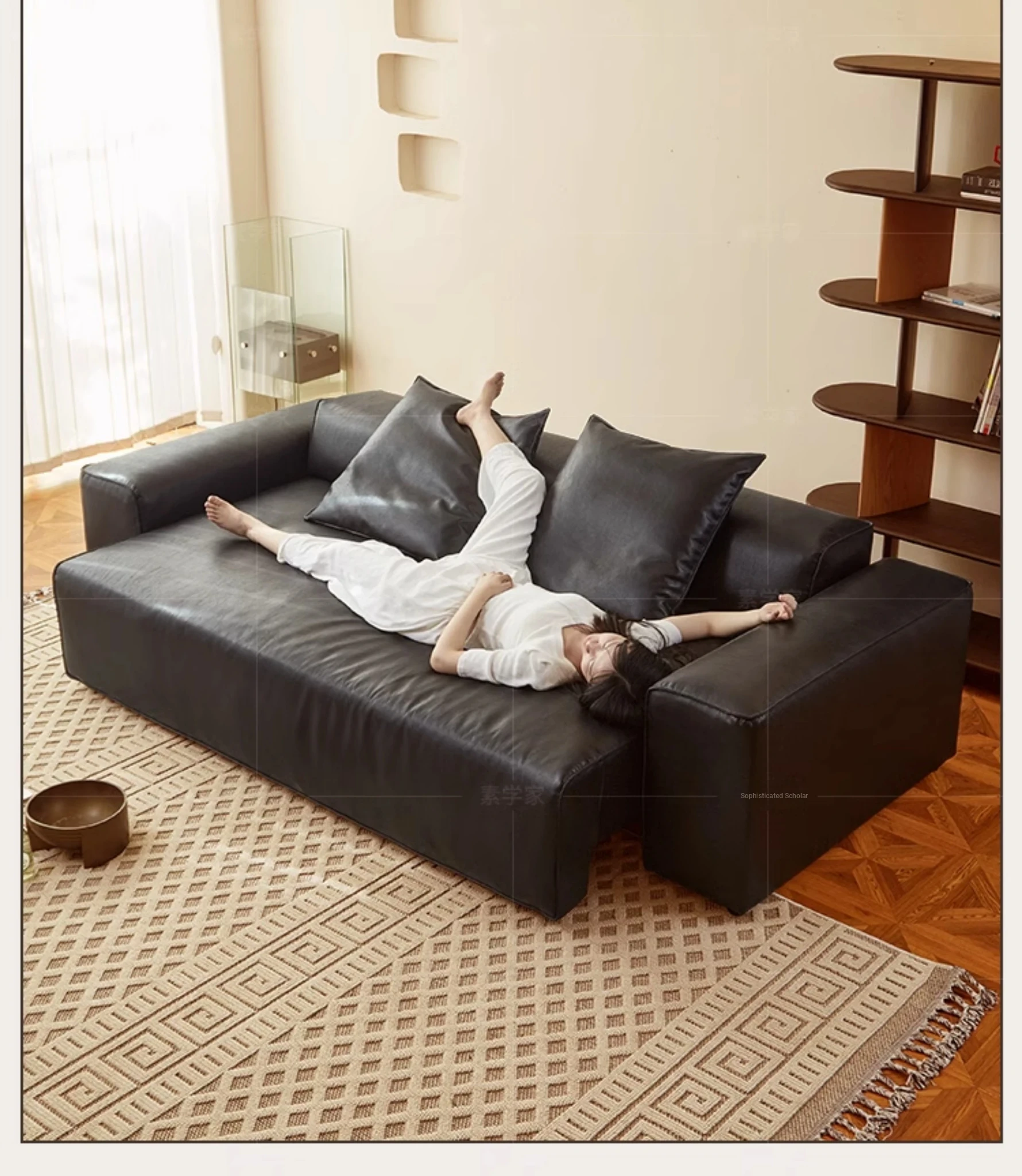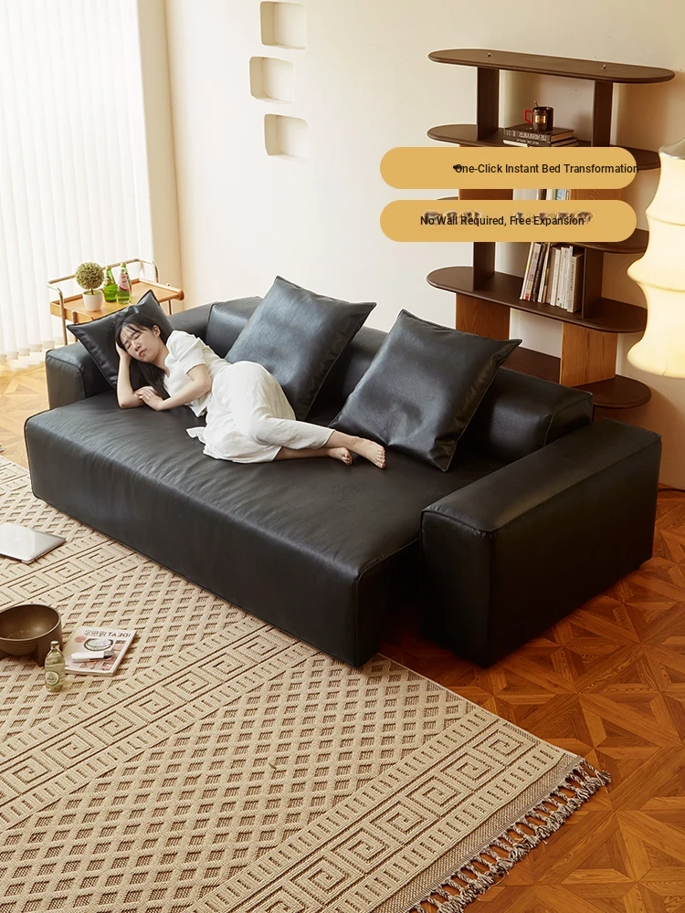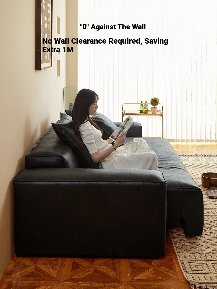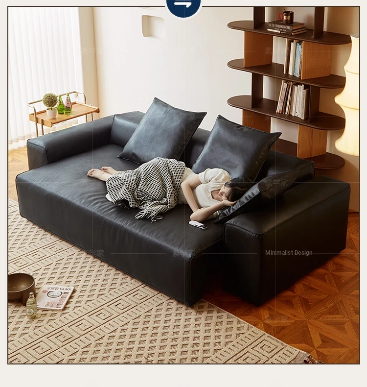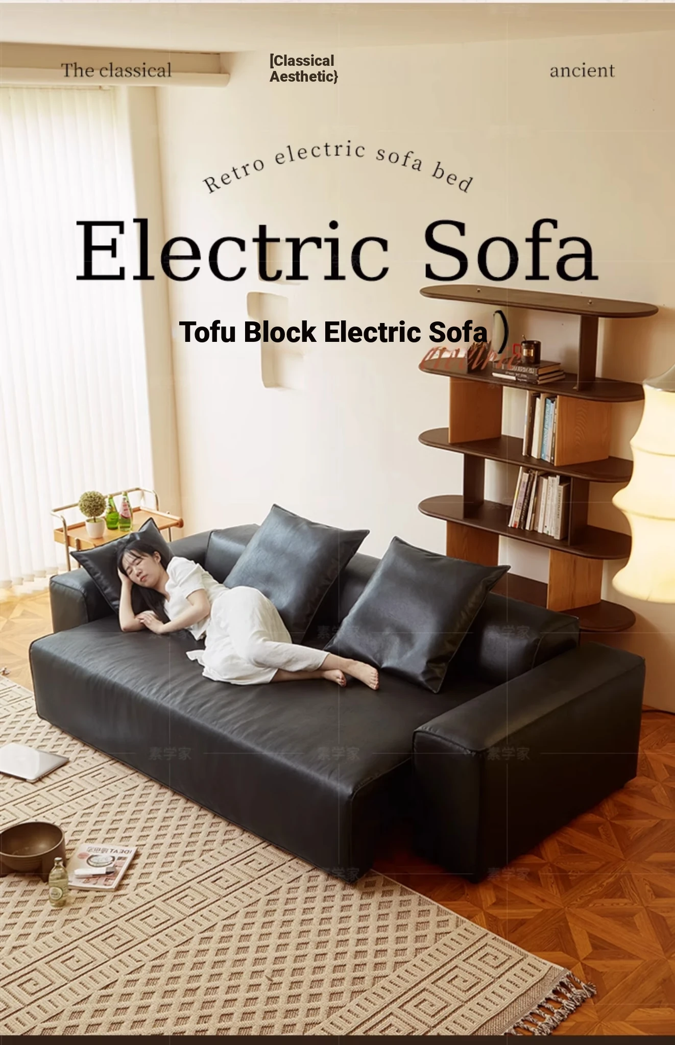 レトロブラック豆腐ブロック電動ソファーオイルワックス本革小型リビング用ソファー一級牛革ビンテージスタイルの魅力!快適な座り心地と洗練されたデザインで、あなたの空間を特別に演出します!