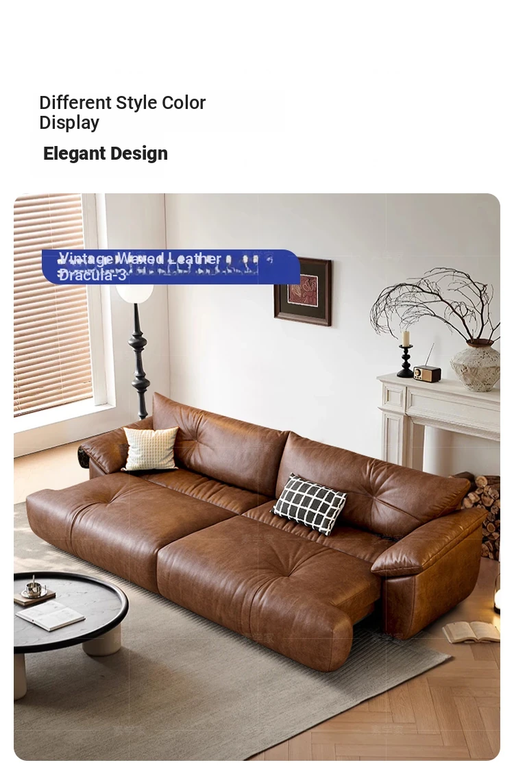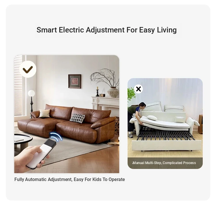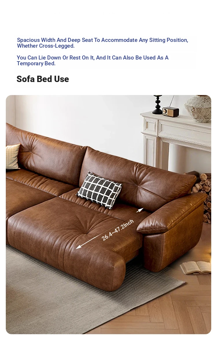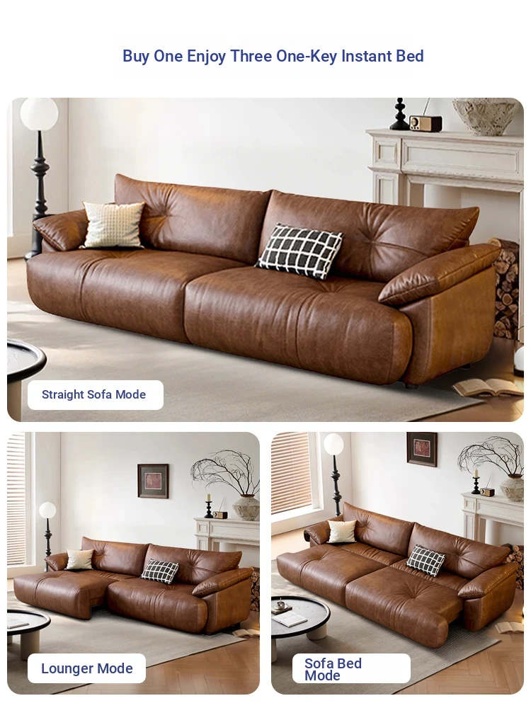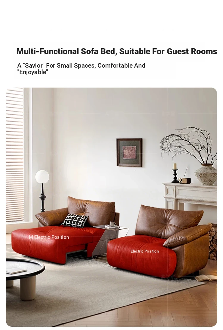 Vintage French Style Electric Sofa Bed with Adjustable and Expandable Features - Retro Oil Wax Leather Fabric for Cozy Living Room Comfort