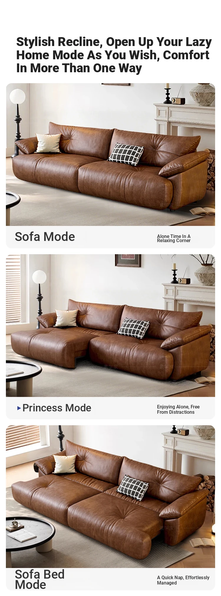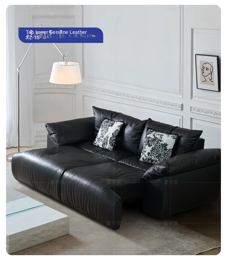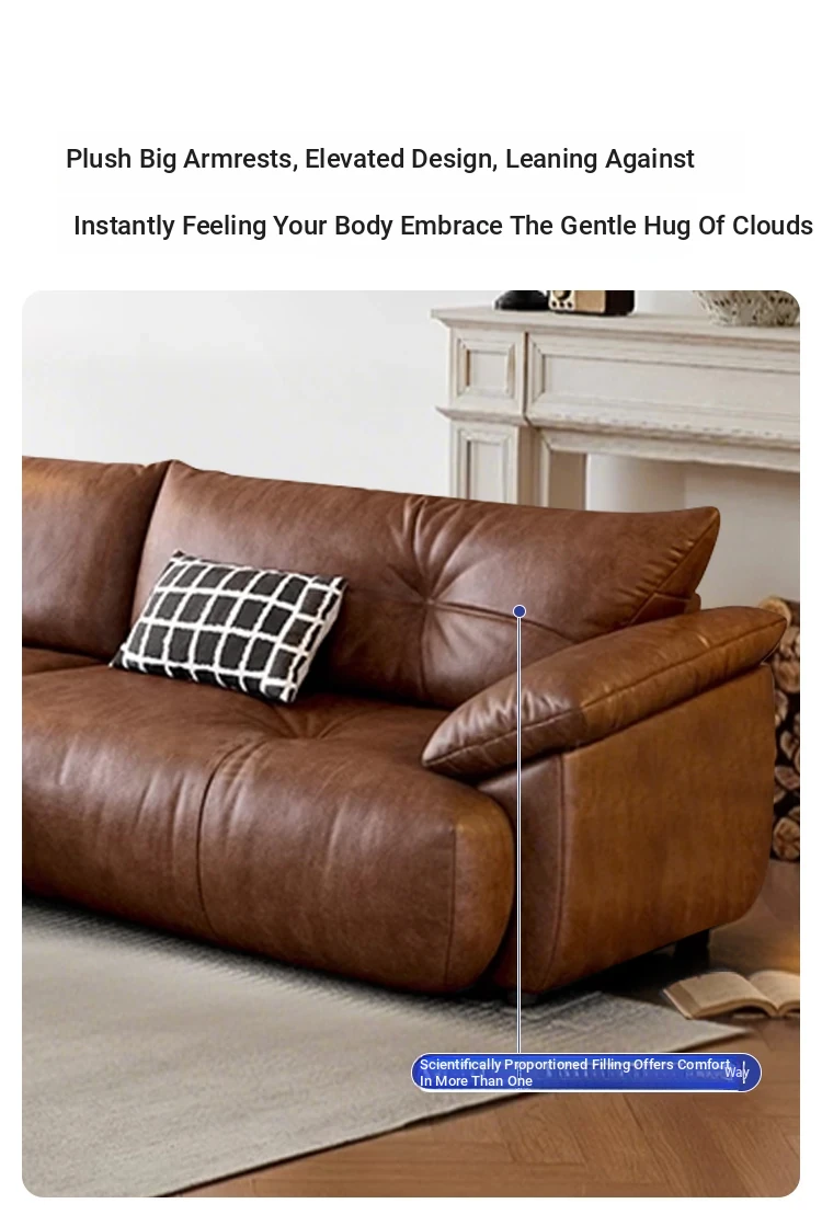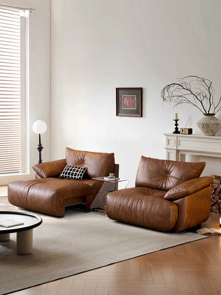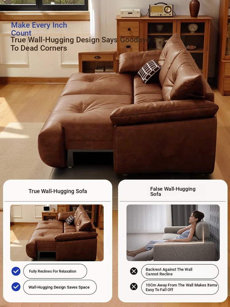 Vintage French Style Electric Sofa Bed with Adjustable and Expandable Features - Retro Oil Wax Leather Fabric for Cozy Living Room Comfort
