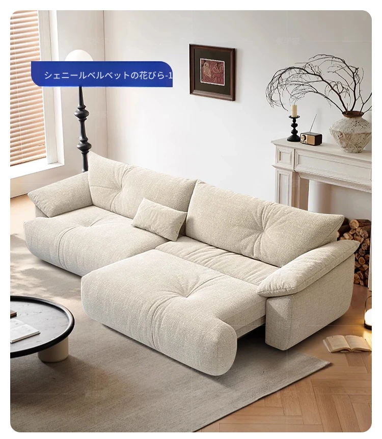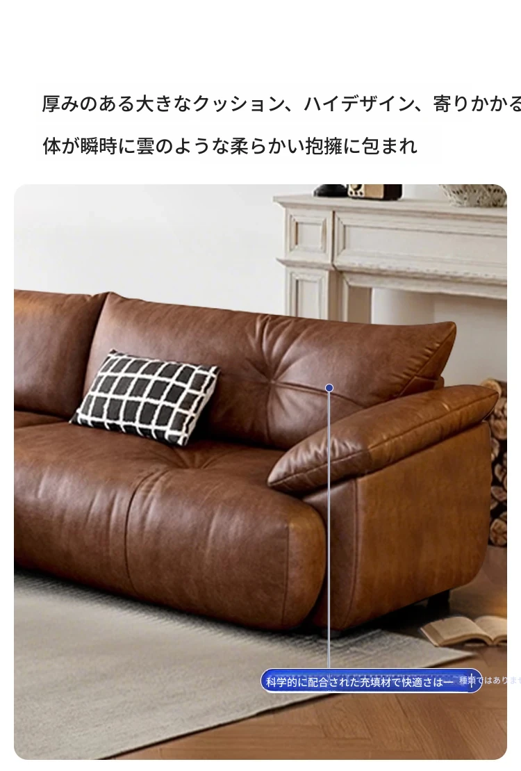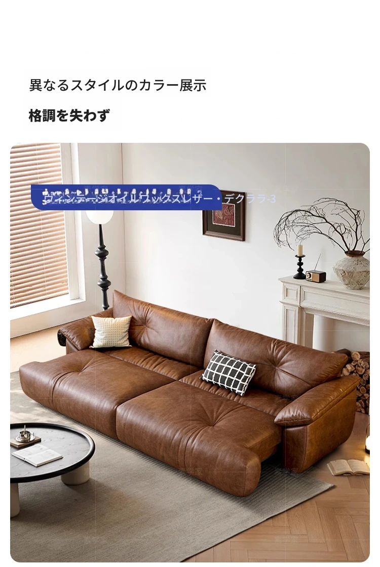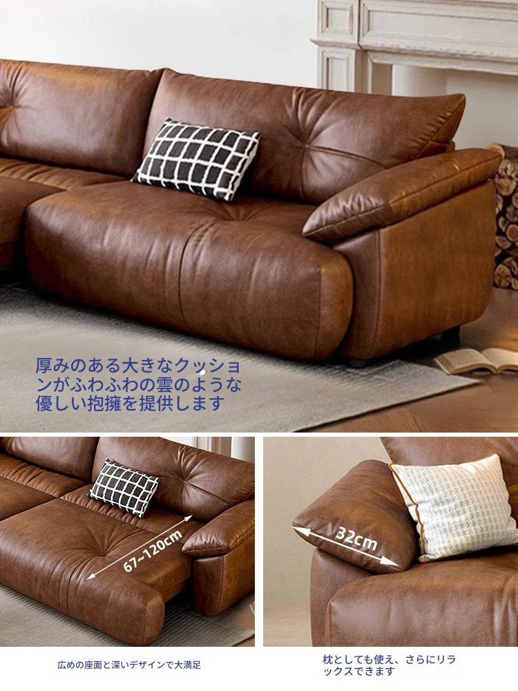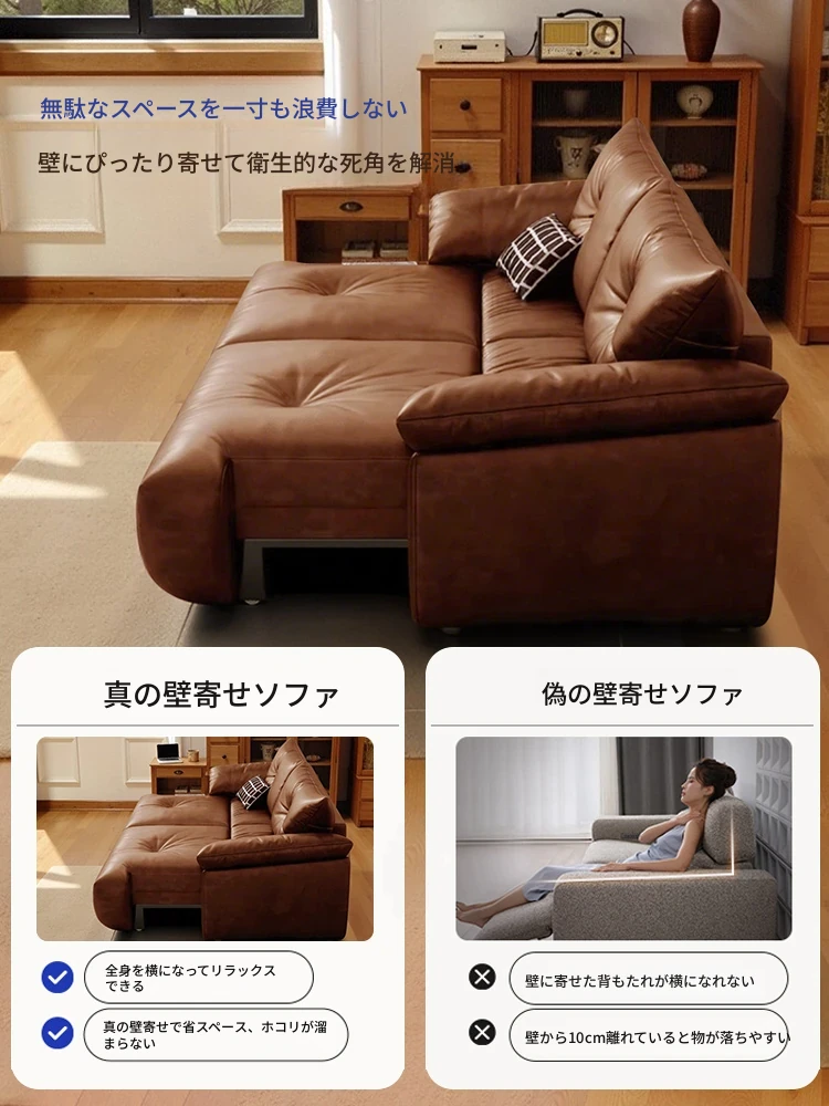 素学家 フランス風レトロ 電動ソファ リビングルーム用 調整可能な伸縮機能 中古風オイルワックスレザー布製 ソファベッド - スタイリッシュで快適な空間を演出!