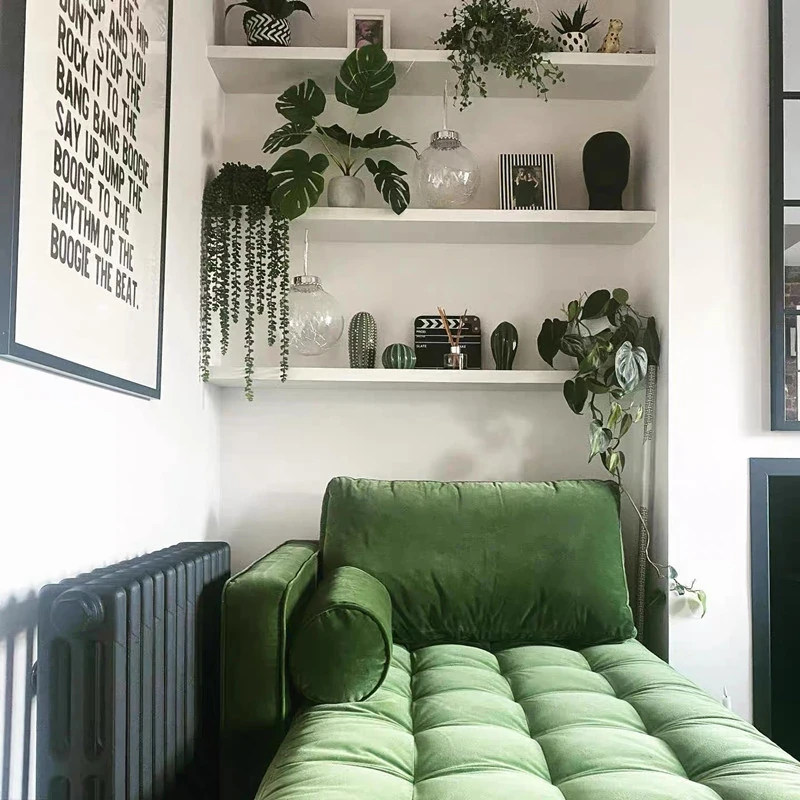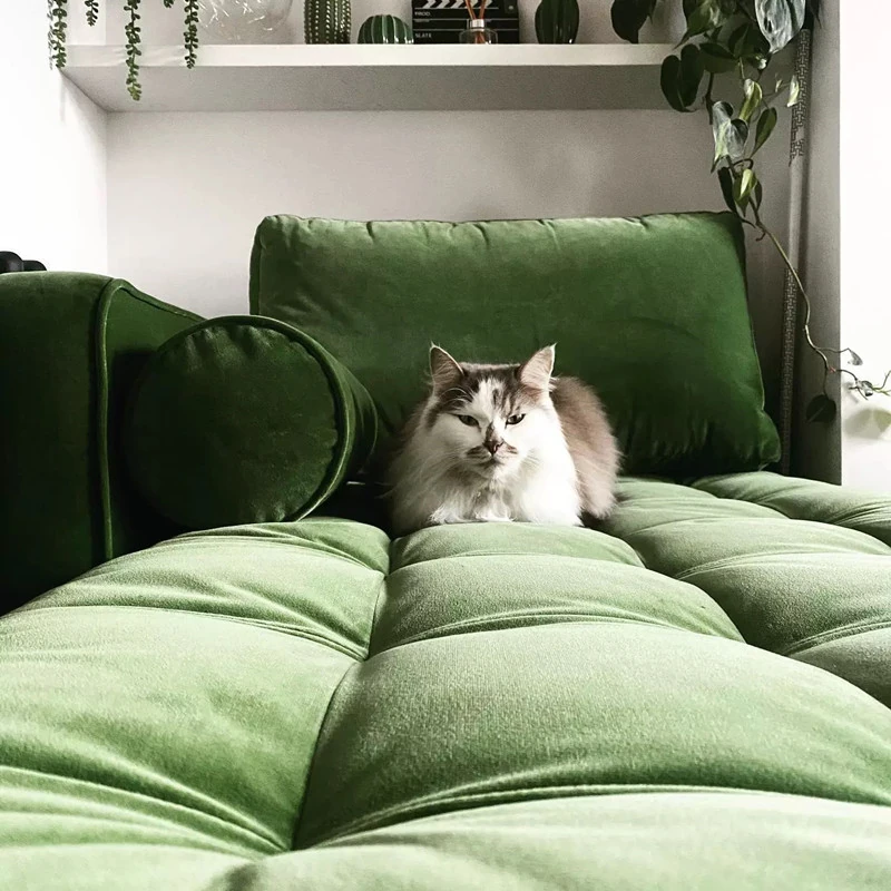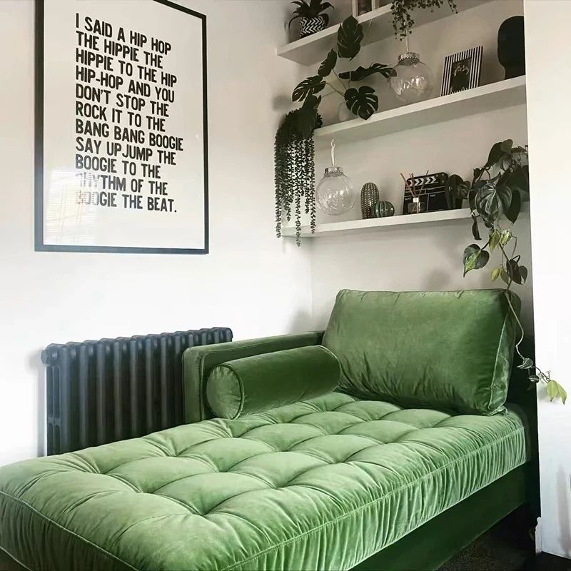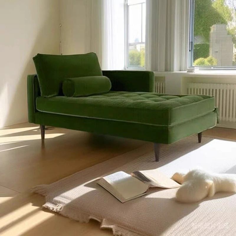 レトログリーンベルベットの中古ネット人気貴妃椅子、美人タタミ。Lサイズの小型住宅にぴったりなリクライニングチェア。快適な寝心地で、あなたの寝室をスタイリッシュに演出します!