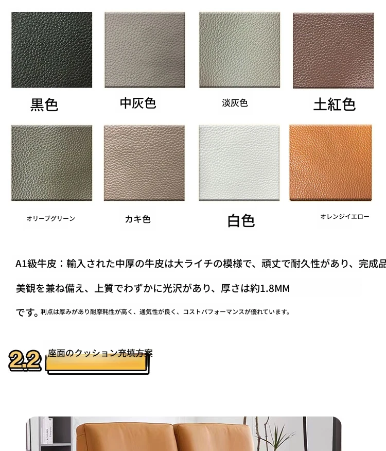 S級中厚軽圧縮接触面真皮1.8MM+東アジア高弾性スポンジ+ロシア松フレーム生涯保証