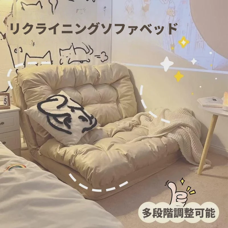 折りたたみ式リラックスソファ!寮生活にぴったりの一人用クッションチェア。寝転んだり、くつろいだりできる小型ソファ。畳やバルコニーでの休息に最適、快適なひとときをお届けします。