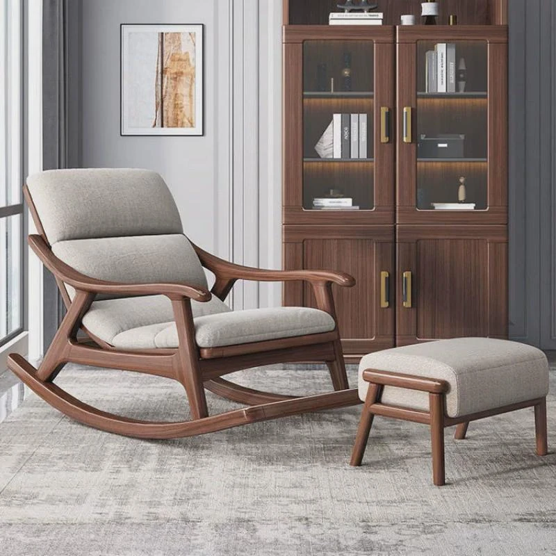新中式デザインの無垢材ロッキングチェア - リラックスできるお昼寝に最適!バルコニーや寝室にぴったりの大人用ソファチェア。快適さとスタイルを兼ね備えた、あなたのくつろぎの時間を演出します。