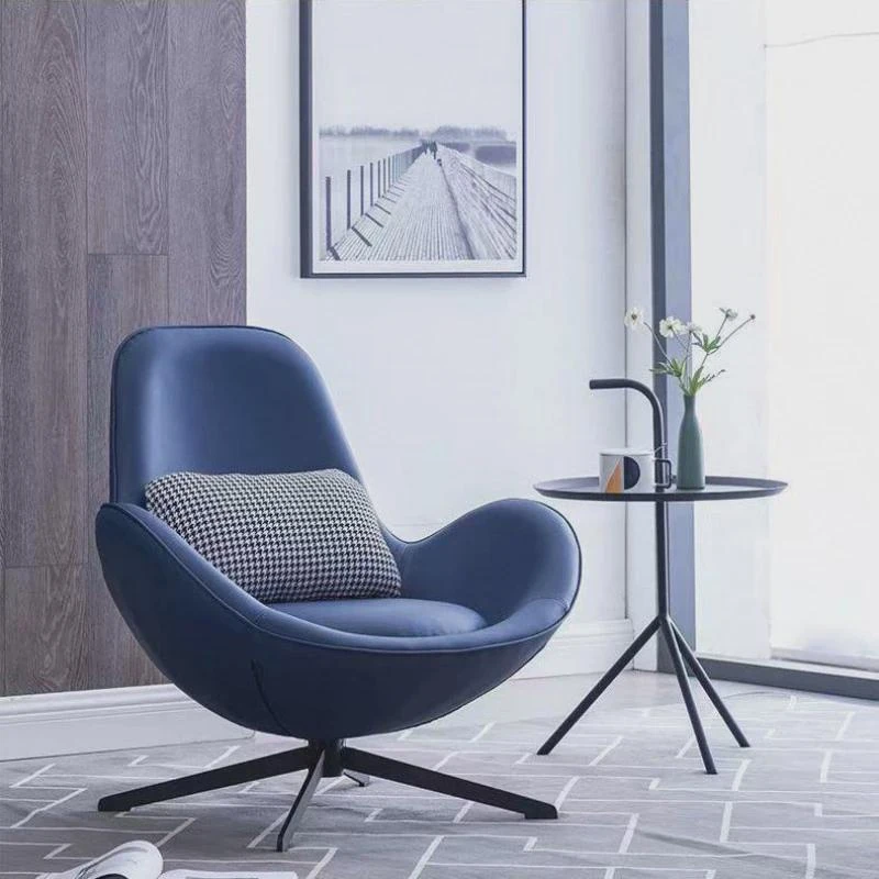 シンプルでおしゃれな本革リラックスチェア!デザイナーが手掛けた、バルコニーやリビングにぴったりな一人用ソファ。卵型の回転スナイルチェアで、くつろぎのひとときを演出します!