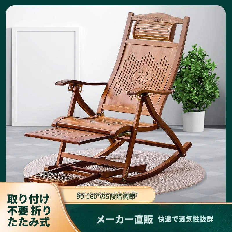 折りたたみ式竹製ロッキングチェア - シンプルで快適な大人用リラックスチェア!居間やバルコニーに最適、年配の方にも優しいデザインで、心地よいひとときを提供します。