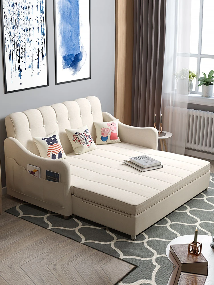 Hong Kong Free Shipping: Multifunctional Sofa Bed for Living Room - Foldable Double Bed for Small Spaces, 1.8m with Storage, Stylish Nordic Design