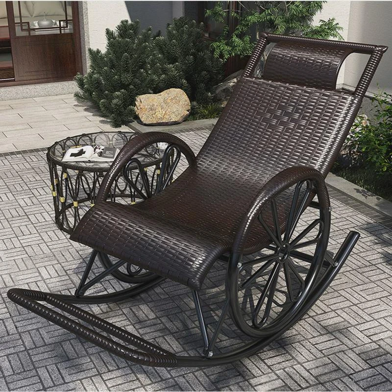 Outdoor Waterproof and Sun-Proof Rocking Chair for Seniors - Comfortable Rattan Recliner Perfect for Gardens and Patios