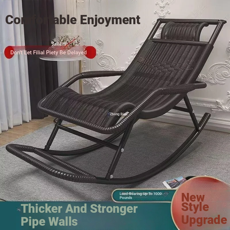 Comfortable Rocking Chair for Adults – Versatile Outdoor Recliner for Balcony & Home – Ideal for Seniors & Afternoon Naps – Stylish Wicker Lounge Chair for Relaxation