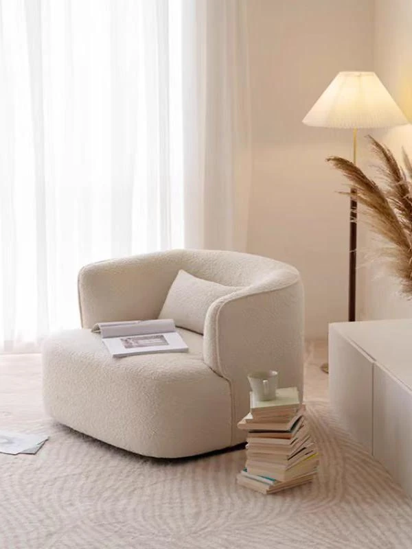 Nordic Minimalist Cream Beige Lambswool Single Rotating Sofa – Trendy Lazy Chair for Living Room & Balcony, Perfect for Relaxation