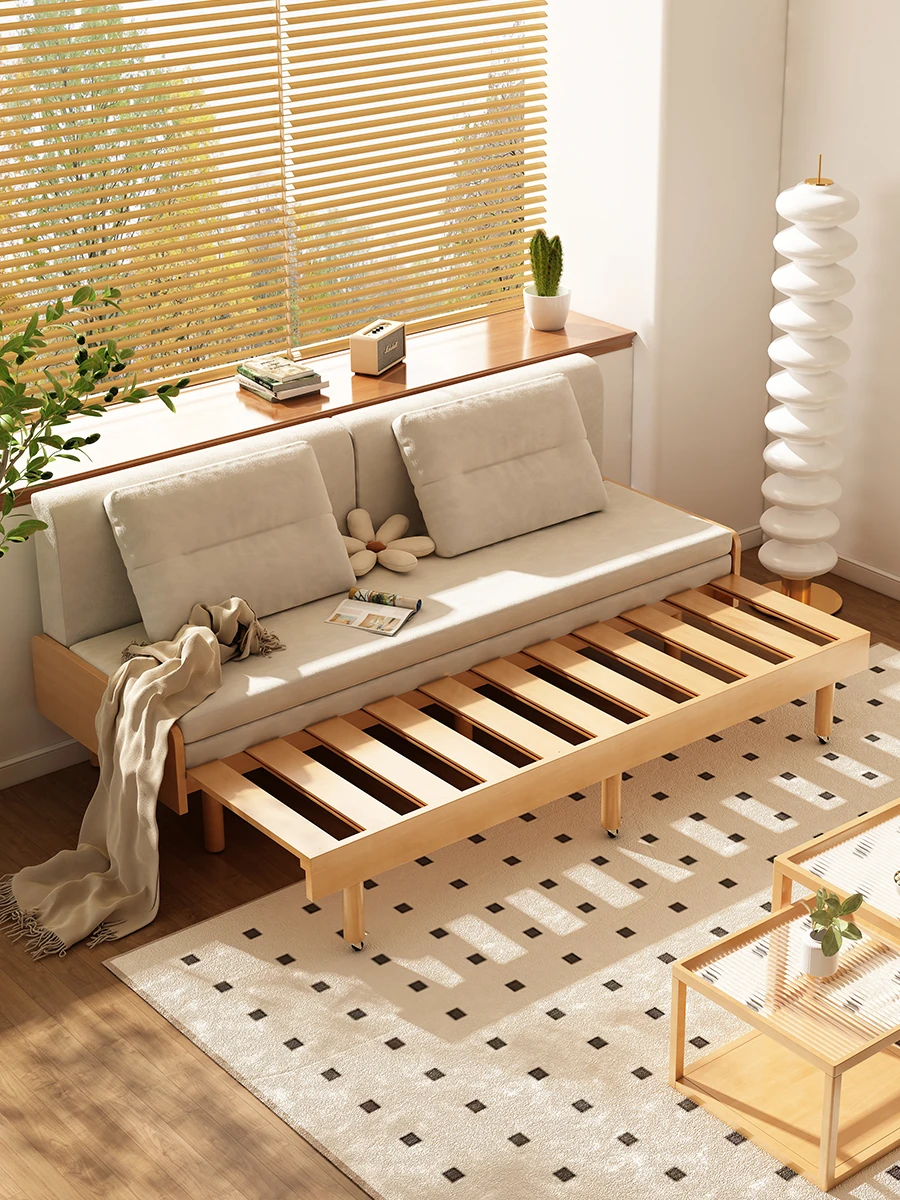 伸縮型ソファベッド - 小スペースに最適!書斎やリビングにぴったりの折りたたみ式、実木製のデュアルユースダブル&シングルベッド。快適な座り心地と眠りを提供し、空間を有効活用!