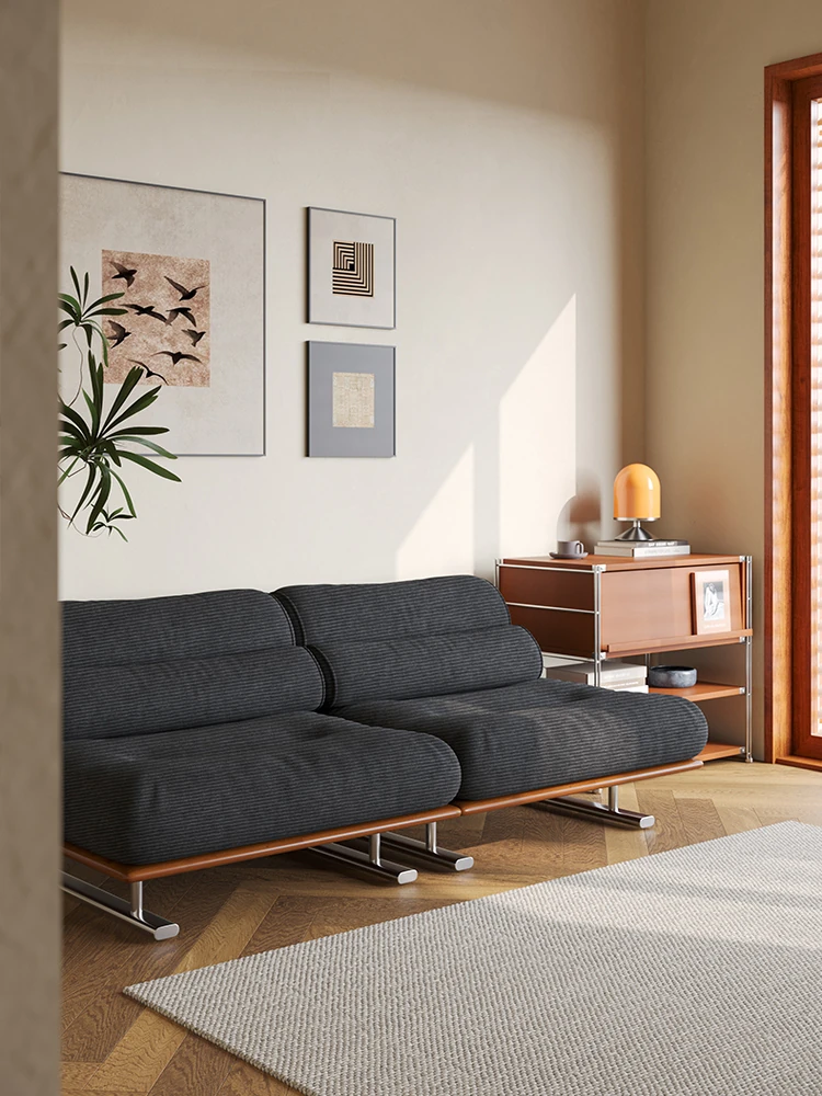 ムレイオリジナル ブラックソファー 中古風ミニマルデザイン 一人掛けソファ 小型モジュールコンビネーション リビングにぴったり!スタイリッシュで機能的な空間を演出します。