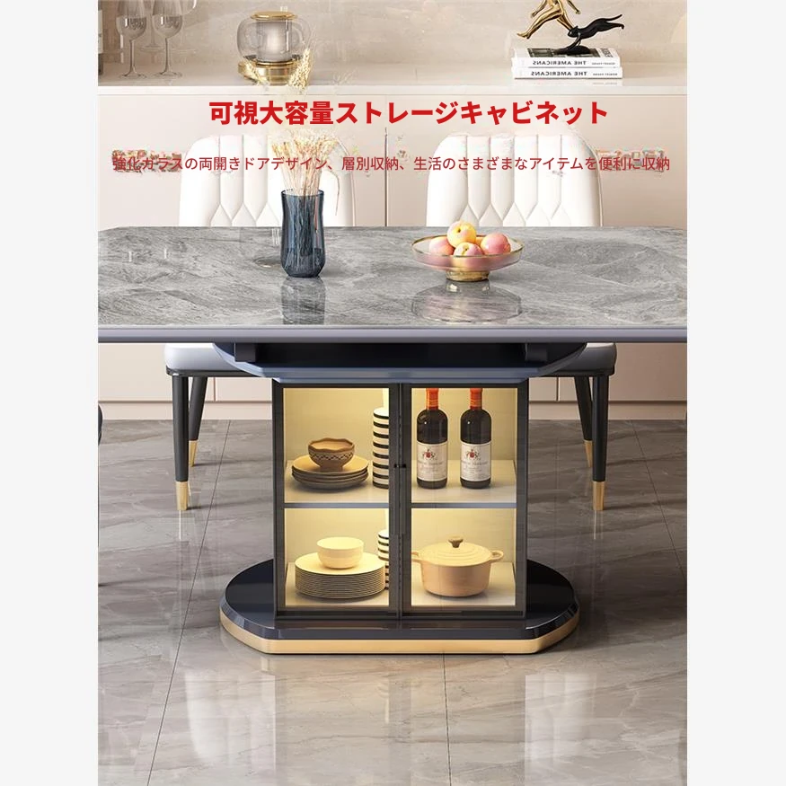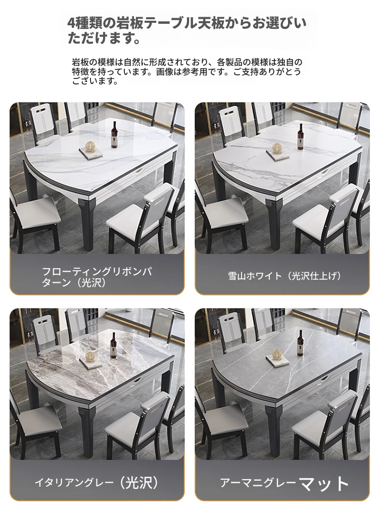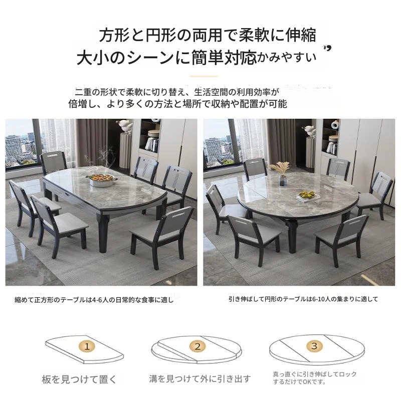 香港送料無料!軽奢感漂う現代的な岩板ダイニングテーブル、シンプルでスタイリッシュな可変式ラウンドテーブル。収納機能付き、コンパクトなお部屋にもぴったりな伸縮折りたたみ式。家族や友人との素敵なひとときを演出!