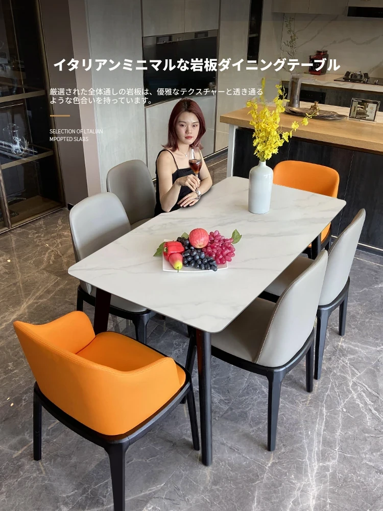 北欧風シンプルモダン長方形ダイニングテーブルセット - 小さな家にぴったりな高級大理石製、スタイリッシュな椅子付き!