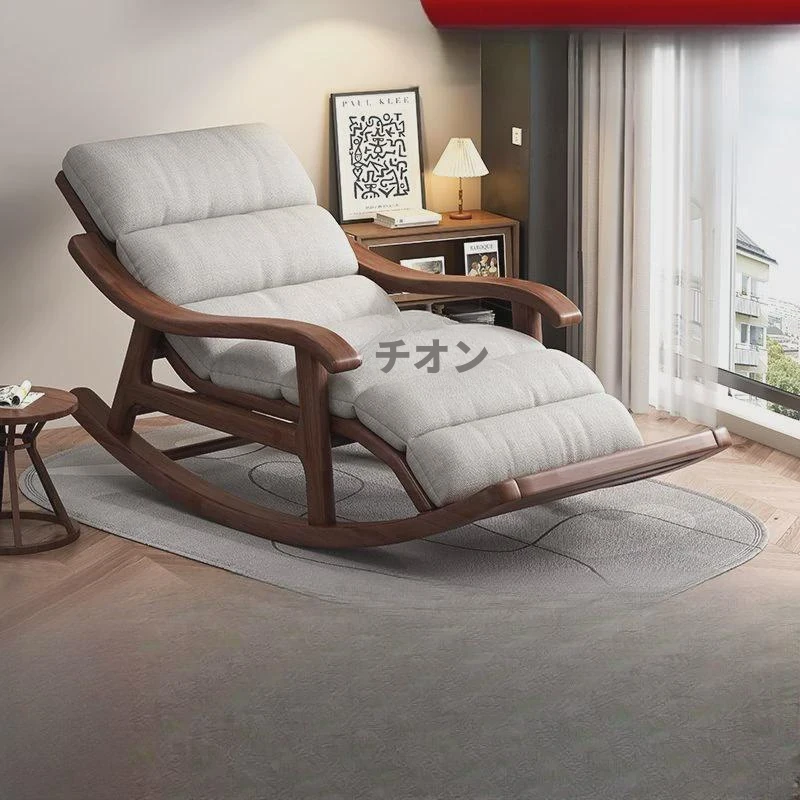 新中式の実木製リクライニングチェア|おしゃれで快適な一人掛けソファ|寝室やバルコニーに最適|軽やかな贅沢感で午後のひとときを楽しむ!