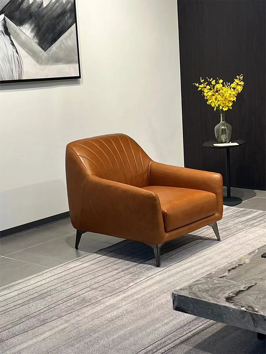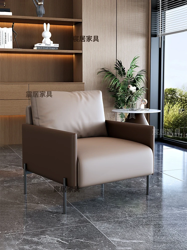 現代的ラグジュアリーなビジネス会議用リラックスチェア - ホテルロビーやフロント、家庭のバルコニーに最適なシングルソファ。スタイリッシュなデザインで、快適さとエレガンスを両立させます。