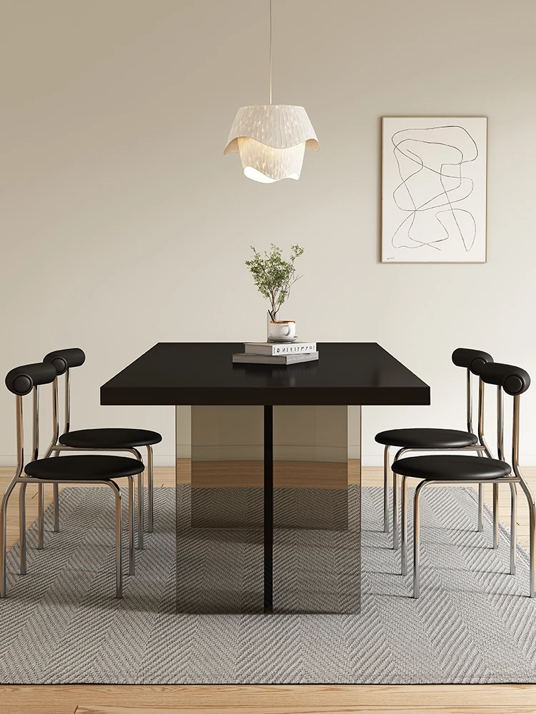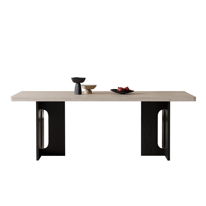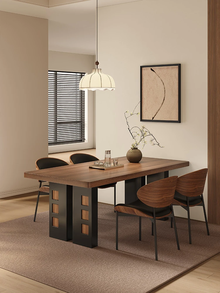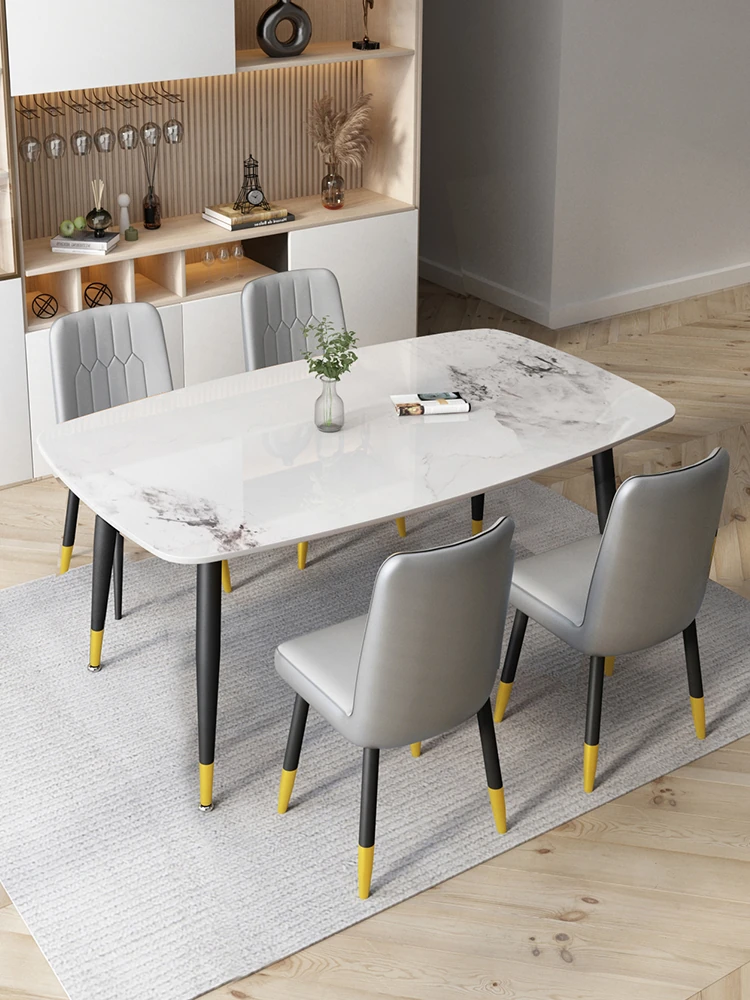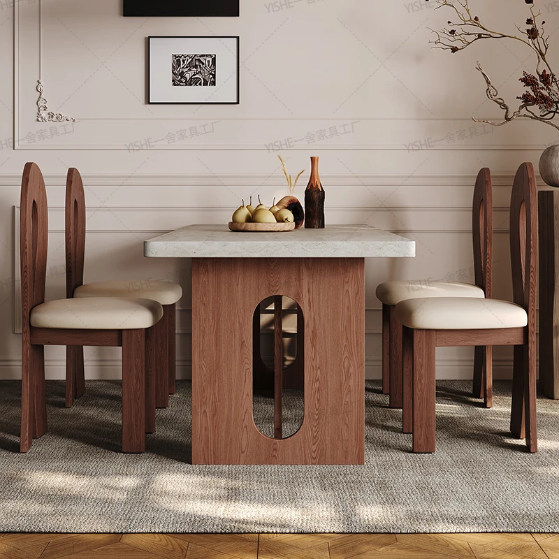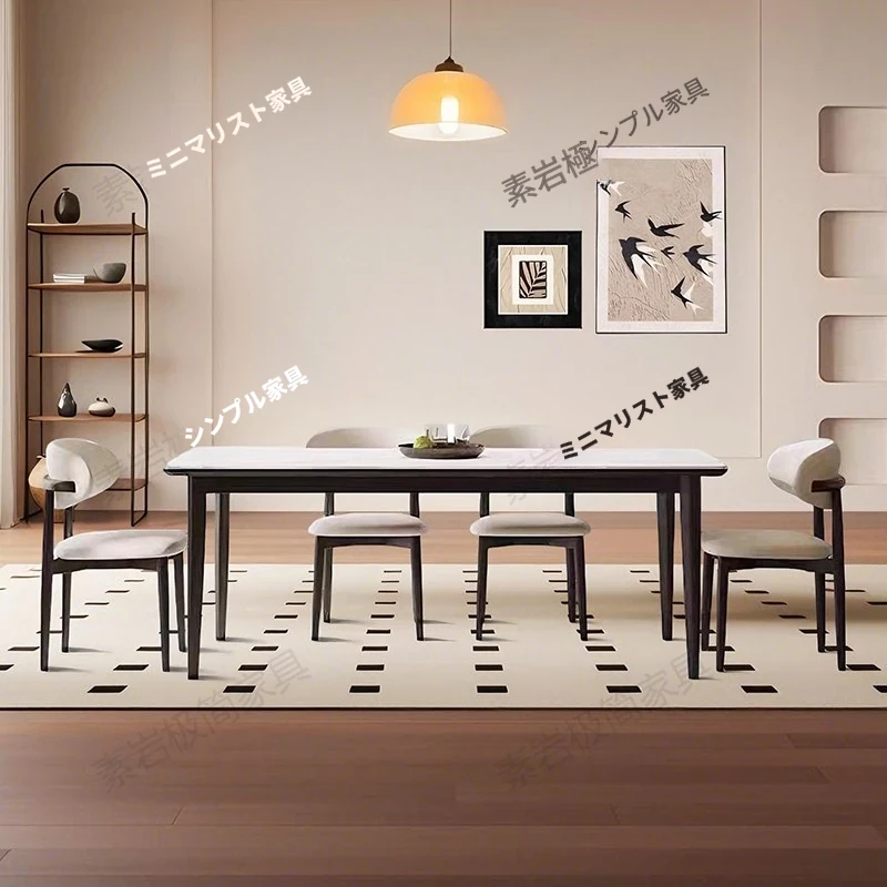 一舍洞石岩板の北欧スタイル実木製ダイニングテーブルセット|長方形・下掛けタイプ|古風なデザインで、家庭にぴったりの食卓を演出します!
