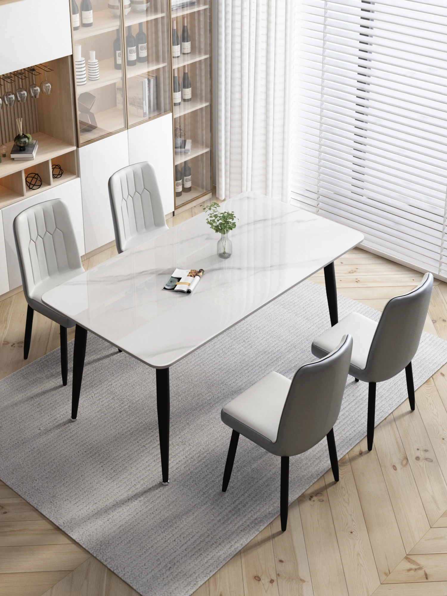 デリフォン純白の岩板ダイニングテーブル|家庭用ブラックホワイトアッシュウッド|小型リビングに最適なモダンシンプルなテーブル&チェアセット!おしゃれで機能的、空間を引き立てる一品です。