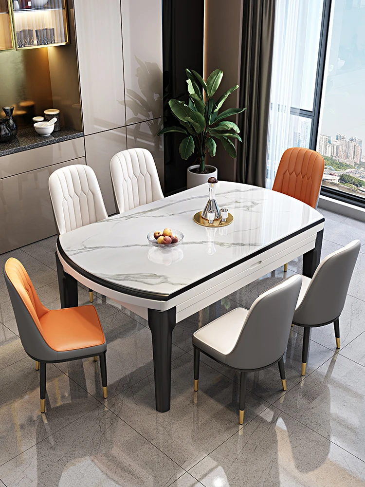 【香港のテーブル】現代的でシンプルなデザインの岩板ダイニングテーブル&チェアセット、軽やかなラグジュアリー感。小さなスペースにもぴったりの伸縮折りたたみ式で、食事を楽しむのに最適!